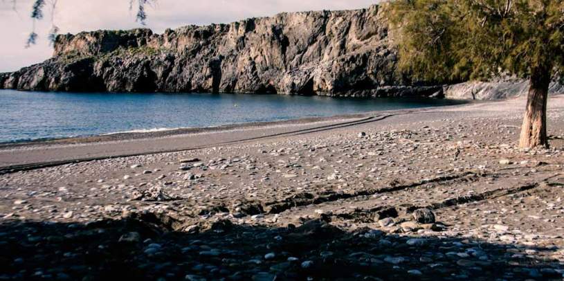 Wir kommen schliesslich in Lendas an. Das Dorf ist nicht gross. Und vollkommen leer. Ein Junge spielt mit sich selber Fussball, ein paar Viecher, ein Radio dudelt und fertig. Am offiziellen Parkplatz parkieren wir und bahnen uns über den Müll einen Weg runter an der Strand. So von unten schaut das Kaff wie ein Seeräuber Nest aus. Im Sommer ist es hier ganz sicher richtig gemütlich, die paar Tavernen offen, der Müll aus den Augen aber nicht weg und Musik klingt durch die vier oder fünf Gassen. Dafür sei Lendas bekannt. Aber wir haben gesehen was wir sehen wollten und fahren weiter an den brandneuen Hafen. Dort wollen wir übernachten.