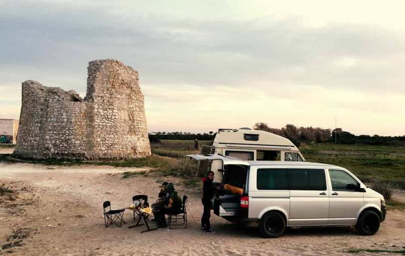 fahren etwas nördlich an den vereinbarten Treffpunkt und üben mal warten. Es ist ohne Internet so wie früher. Man hat abgemacht und geht warten. Punkt. Also parken wir den Bus gut sichtbar auf diesem grossen, grasigen Parkplatz. Fabi und Ray werden bald da sein. Das ist also Italien. Zeit für Frühstück.