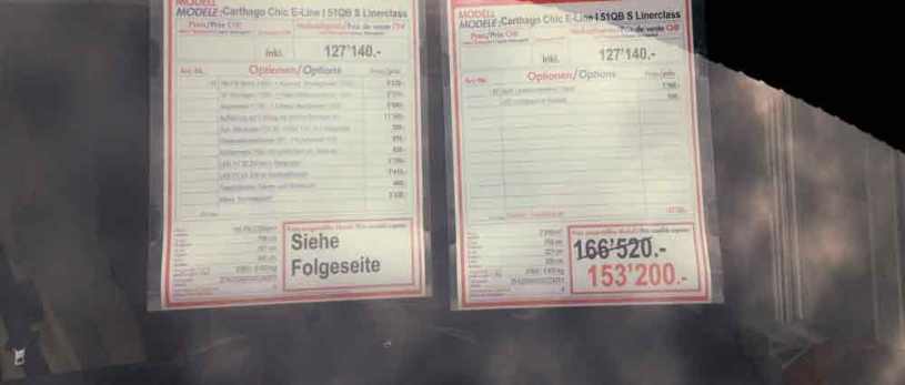 Nicht gerade gekleidet wie 155 Tausend Stutz, aber mit Auftrag, suchen wir uns zwei dieser Supermobile aus und betreten die fahrenden Luxusliner. Um gleich wieder entäuscht auf den weissen Polstern mal abzusitzen. Und durchzuatmen.