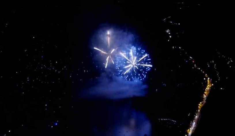 Eine Minute vom Feuerwerk da in der Stadt. Wir haben vom Balkon aus zugesehen.