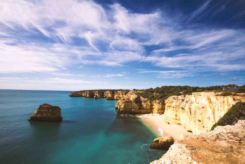 Den Klippen entlang führt ein Weg, mal in den Stein reingehauen, mal nicht.