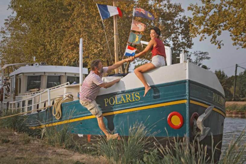 wir diese Tage über. Wir sind am Kanal in der Gegend von Montauban angekommen und hängen uns mal ans Schiff von meinem Freund und seiner Frau, haben uns grad gar viel zu erzählen und die paar Nächte werden lang. Wohnen tun die beiden auf einem Holländer Schiff, gross und gut eingerichtet.