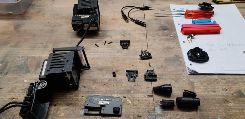 wir gerade am platzieren. Anton Bauer ist ein Zulieferer für die Filmindustrie, wir haben zwei dieser Kopflichter hier am Lager. Diese typischen EB Kamerablender die niemand mag. Eines davon baue ich auf LED um und statt 20 Watt packt die neue Lampe noch knapp 8 Watt. Kann sie jetzt auch vom Akku der Zeitraffer Maschine speisen.