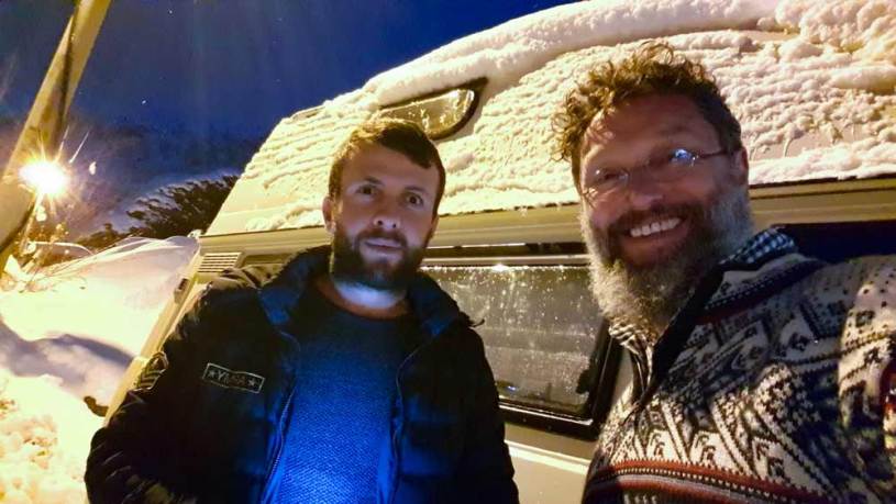 So gegen Abend sehen wir uns mal an wie das nach dem Dorf in Richtung Iran so ausschaut. Das tut man gern, so miteinander durch den Ort laufen. Und die Strasse ist wohl vereist aber gut geräumt. Es hat aufgehört mit Schneien.