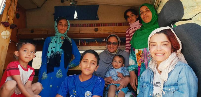 An der Strasse rechts, finden wir diese drei da. Tja, er mit dem Rad in der Hand, sie hechtet ins Bild und der Kleine versteckt sich hinter meiner persischen Blume. Und die radeln durch das Land. Kreuz und Quer. Link zu Instagram. Sie halten Vorträge an Schulen, radeln weiter und fast jeder hier kennt die drei. Er reppt gerade eine Speiche am Rad.