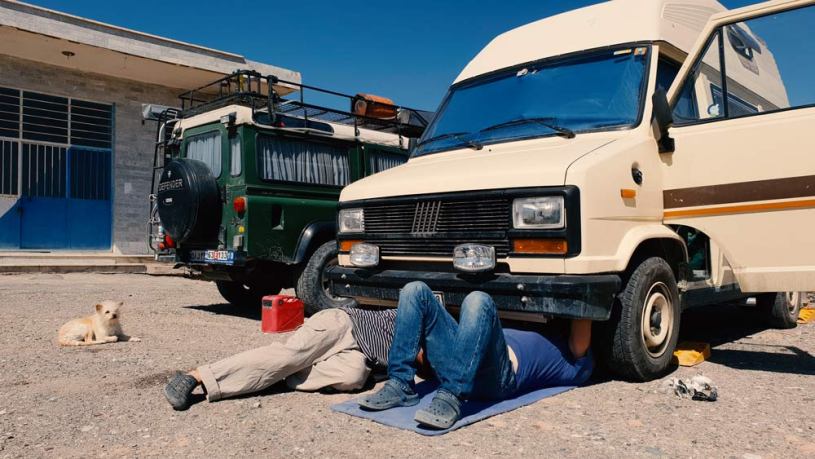 In Bam will ich endlich die neue Achsmanschette, die aus Deutschland via der Schweiz und Tehran angekommen ist, einbauen. Vorher aber gibts noch einen neuen Verband ran. Erstaunlich wie die Sache eigentlich hält.