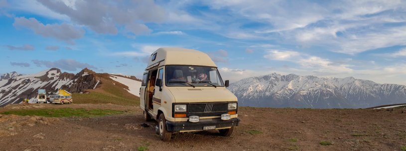Oben auf dem Pass, schon seit gestern angekommen, stehen an bester Stelle ein paar VW Busse. Die Bewohner dieser Camper haben an einem guten Ort abgemacht. Das letzte mal zusammen campen, essen, lachen und anschliessend Abschied nehmen.