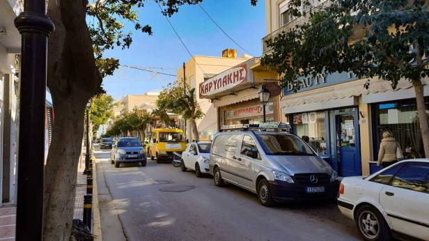 Wir brauchen wieder einmal eine SIM Karte. In Megara gibt es diese Dinger direkt an der Einkaufsstrasse. Hinter dem gelben Bus.