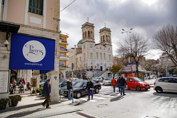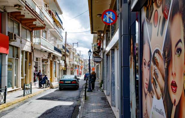 Das Kabel gibt es hier nicht zu kaufen und aus Athen liefern sie nicht. Wir bleiben nur kurz hier. Und tun etwas den Leuten zusehen. Die größten Ausbildungseinheiten der griechischen Armee und der Luftwaffe sind hier um Tripoli stationiert. Vermutlich hat das die Journalistin zu ihren Beinkleidern inspiriert. Während der junge Kameramann wohl eher von der Univerisät der Peloponnes beeinfusst wurde. Die hat hier ihren Sitz seit 2002. Einige Einwohner werden wohl zur Situation befragt, vielleicht auch wegen was anderem. Den Hund stört das nicht.