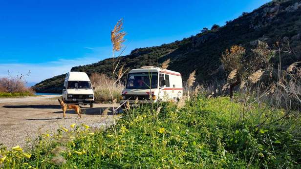 Es stehen an diesem langen Strandabschnitt etliche andere mobile Behauser, Platz hat es mehr als genug. Haben wir mal Zeit, gehen wir uns die alle mal ansehen.