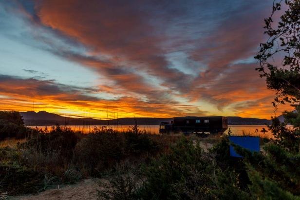 Man muss die Farben akzeptieren wie sie sind. Eigenartigerweise bin ich im Bus immer früh wach, ob ich nun früh in die Federn hüpfe oder spät. Es zieht mich magisch aus der rollenden Hütte.