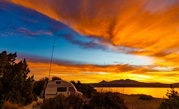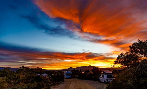 Vorne im Lager, Ruhe pur, bloss Sam der schöne Hund Mitbewohner von der WG im Alkovenmobil aus deutschen Landen beäugt mich munter, aber sonst regt sich nichts. Damit Sam kacken kann darf er früher raus.