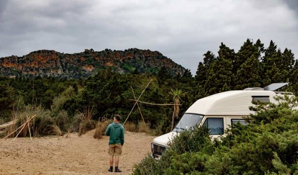 Man kann sich selber lieb sein wie man so steht. Vom Norden her etwas gedeckt, von Afrika her etwas offen. So passen wir ordentlich gut in die Landschaft.