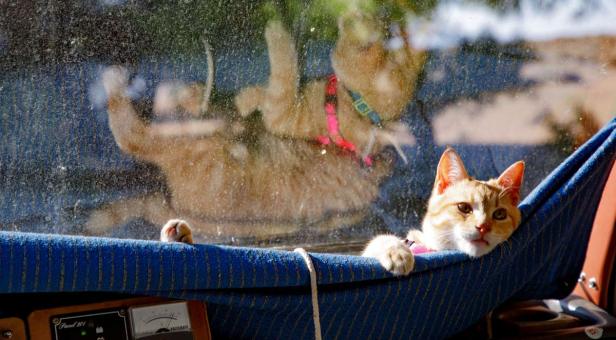 Caspar hängt faul im Bus rum. Lebhaft wird er auch regelmässig. Und wunderbarerweise hört er auf das Gesäusel meiner persischen Blume. Der Caspar läuft ihr die halbe Zeit hinterher, eine Augenweide die beiden.