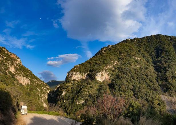Peloponnes ist es ruhig. Es ist früher Tag und die Sonne scheint über schroffe Hügel zu uns runter. Ein paar Vögel sind auch wach, der Fluss rauscht unten wie er das schon lange tut. Von weitem her kann ich die kleinen Glocken der Ziegen hören.