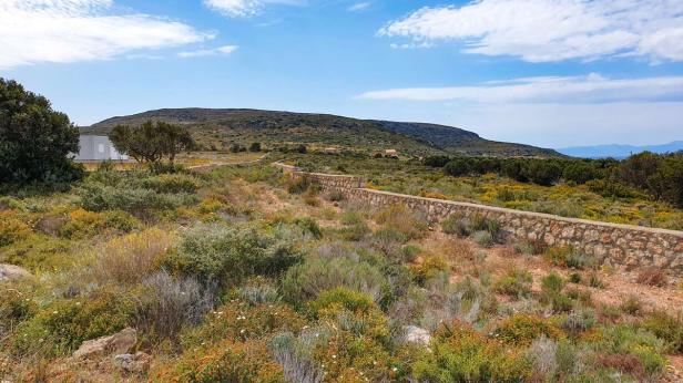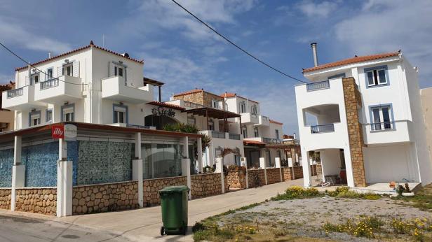 Die Griechen trauen den staatlichen Stellen wie Grundbuchämtern und Co. nicht über den Weg. Deshalb wird zuerst die Mauer um das Grundstück hochgezogen und später dann mal das Haus. gebaut Die Mauern haben einen Betonkern. Meistens. Diese rechts im Bild mal nicht. Bin extra nachsehen gegangen. Diese Mauer ist also sehr teuer.