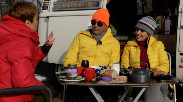 Und was erfahren wir? Mania und Mahan, verheiratet, zwei Kinder, eigenes Geschläft, fanden mal, wir kaufen einen alten Bus, reppen den, fahren nach Berlin um Verwandte zu besuchen, dann fahren wir wieder zurück. Das ist die Kurzfassung. Die beiden Teenager schauen derweil zu Hund und Haus. Alles andere sind Details. Der erste Eindruck der beiden täuscht nicht. Grundsolide, gut vorbereitet, offen, neugierig, was soll ich sagen. Wären feine Nachbarn.
