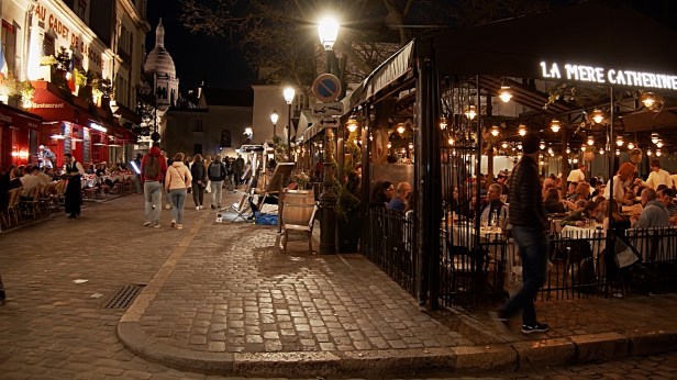 Wir sind hungrig, setzen uns an diesem normalen Wochentag in ein Restaurant, essen, hören Musik und blenden direkt über in den Nachtzug nach Paris.